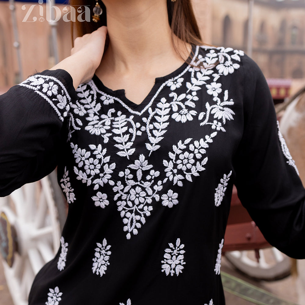 Aiyana Modal Black Short Chikankari Kurti