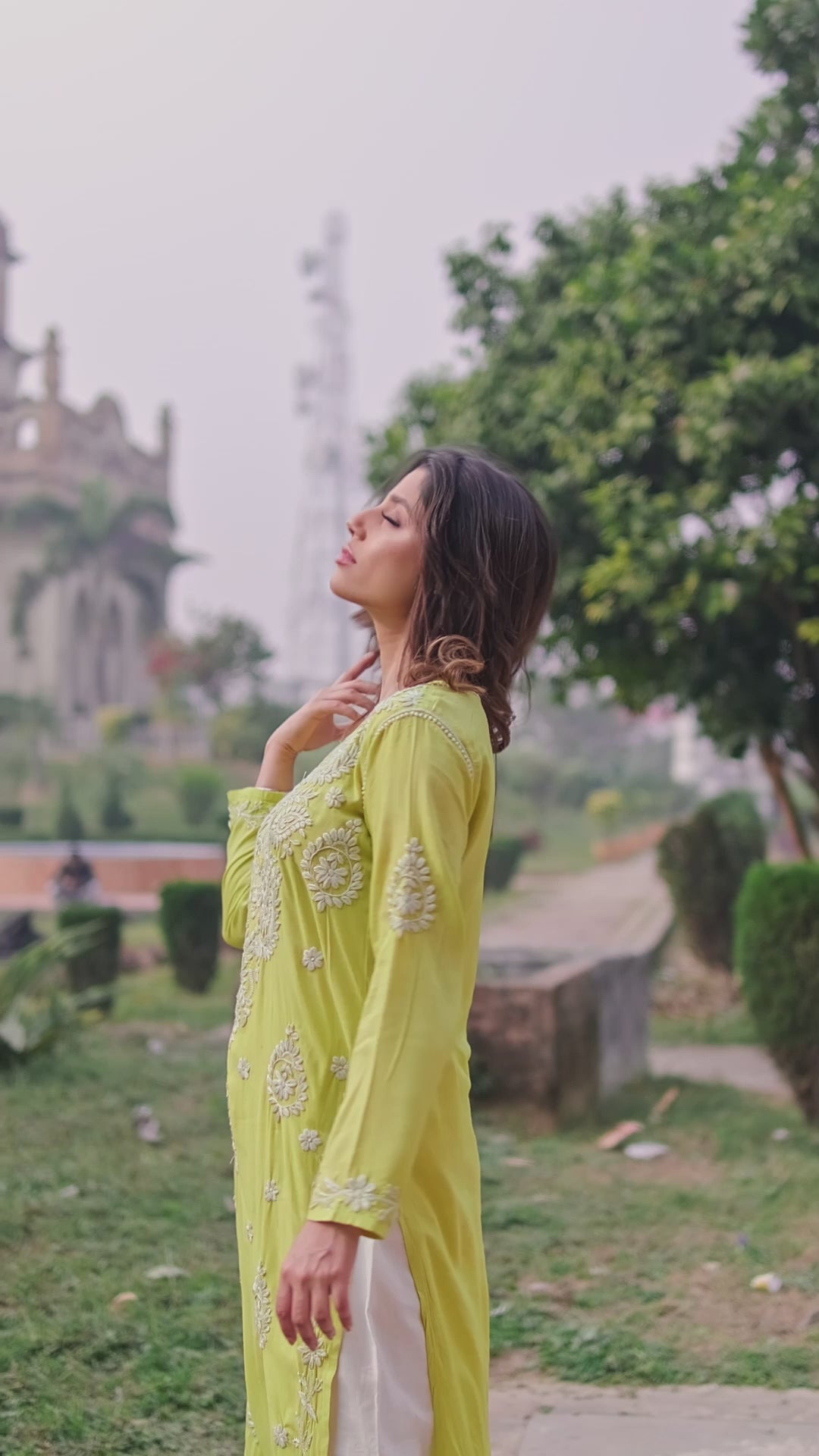 This kurta features delicate and intricate hand embroidery known as Chikankari - a traditional embroidery style from Lucknow, India. It lends the kurta an elegant, classy look. The floral embroidery spans the front, back, and sleeves of the kurta.