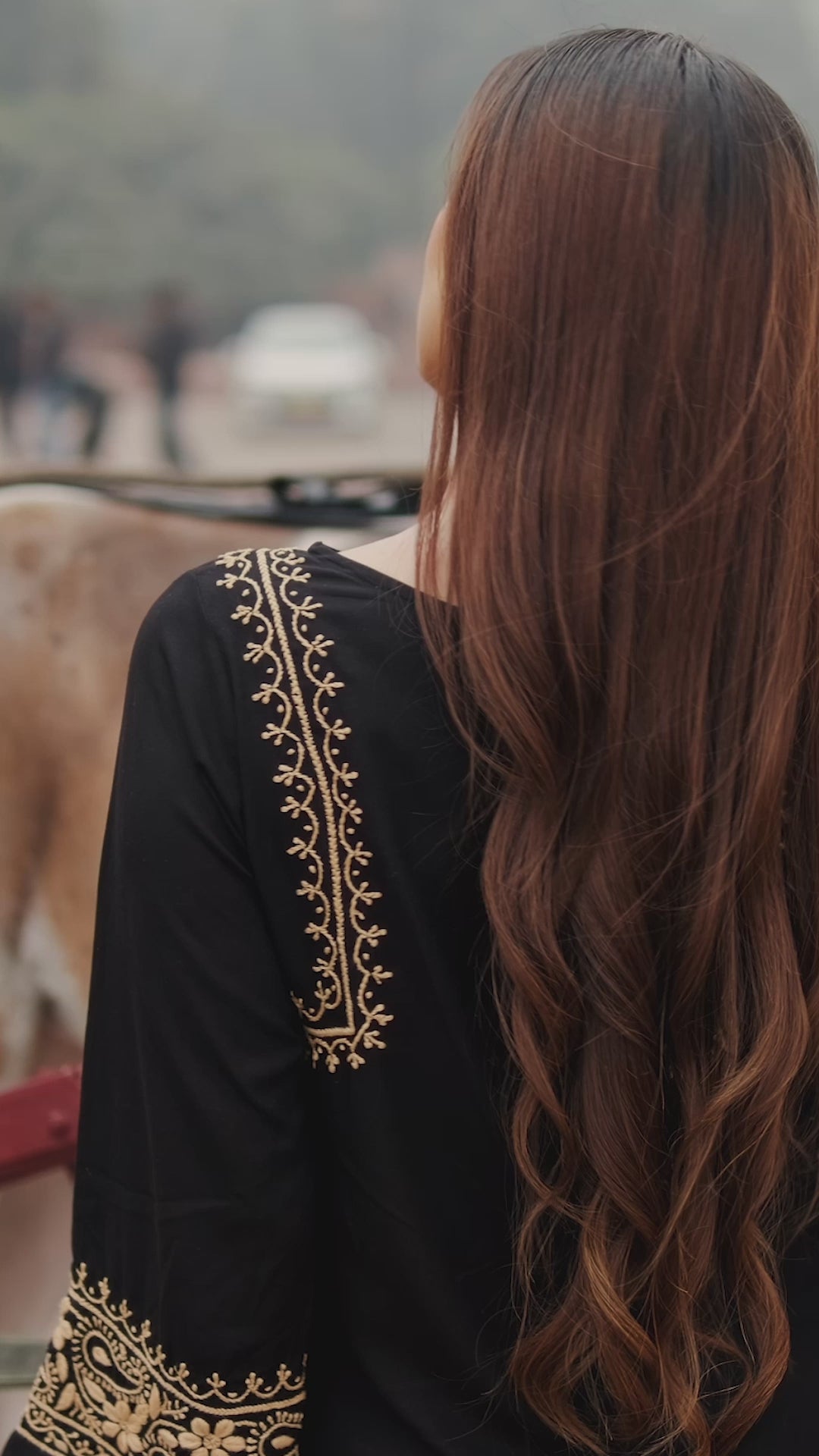 Our Husn Luxury Rayon Black Chikankari Kurta with handcrafted Golden Brown Embroidery is the definition of effortless elegance. The rich black fabric makes the perfect backdrop for the intricate golden-brown embroidery, giving it a sophisticated yet timeless appeal. It’s the kind of outfit that turns heads - not because it’s loud, but because it’s just that classy.